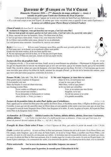 -samedi 24 janvier : messe à 18h00 à Hergnies -dimanche 25 janvier : messe à 9h30 à Escautpont et à 11h00 à Condé Saint-Wasnon