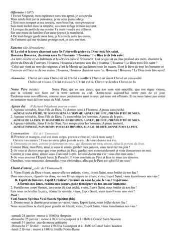 -samedi 31 janvier : pas de messe anticipée