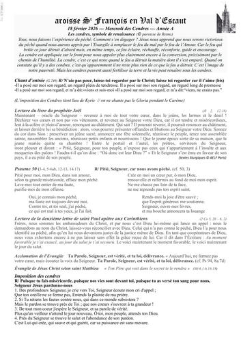 vente des livrets de Carême 'donne-moi un quart d'heure' à la sortie de la messe (3€) voir lien ci-dessous