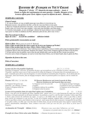 -Samedi 7 février messe à 18h00 Fresnes Trieu