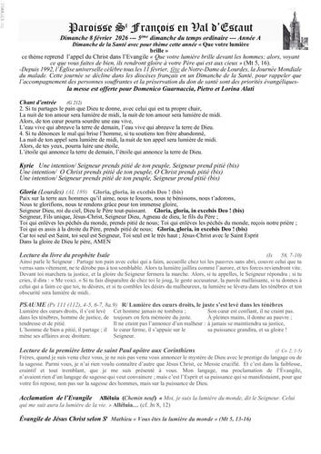 -Dimanche 15 février 9H30 messe à Escautpont – à 11 H messe à Condé St Wasnon
