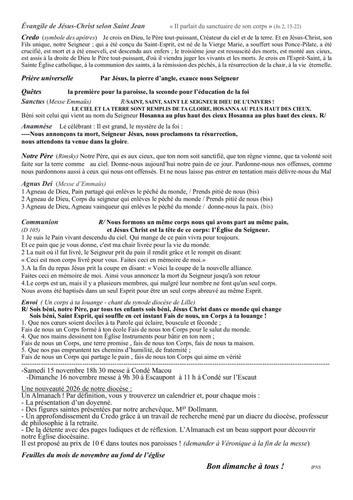 -Samedi 15 novembre 18h 30 messe à Condé Macou